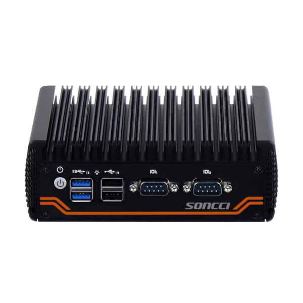 The whole-aluminum alloy shell has strong rigidity, and the aluminum fin design quickly dissipates the heat of the main unit. The internal structure without cables, fans, and a fully enclosed design prevents dust from entering, ensuring stable operation of the main unit in a wide temperature range (-10 ~ 60℃). The flexible installation methods include embedded, wall-mounted, and desktop installation, and it can be used in fields such as industrial control, transportation, self-service terminals, security machine vision, mini servers, and smart cities.